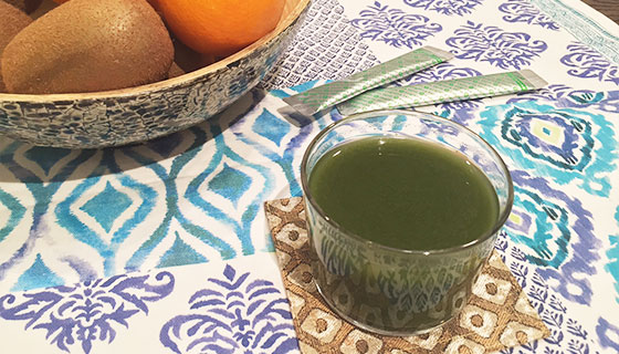 (せめてもの健康維持のため愛飲中の緑汁。朝一番の日課です!)