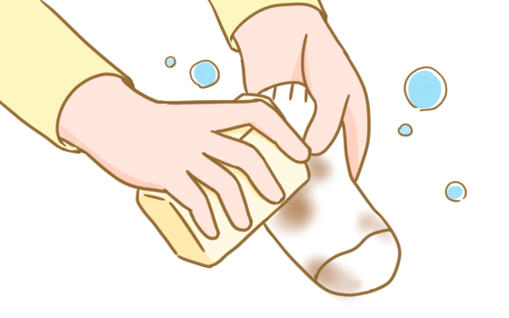 「洗濯用の固形石鹸(弱アルカリ性)を汚れた部分に塗布し、もみ洗いします。お湯の中で洗ったほうが、より良いでしょう。