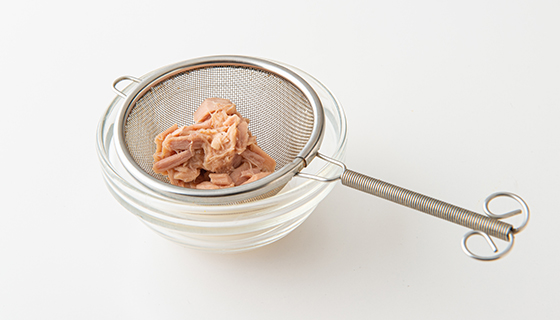 茶こしなどでしっかりと汁けををきったツナを加え、再びラップをかけて2〜3分蒸らす。