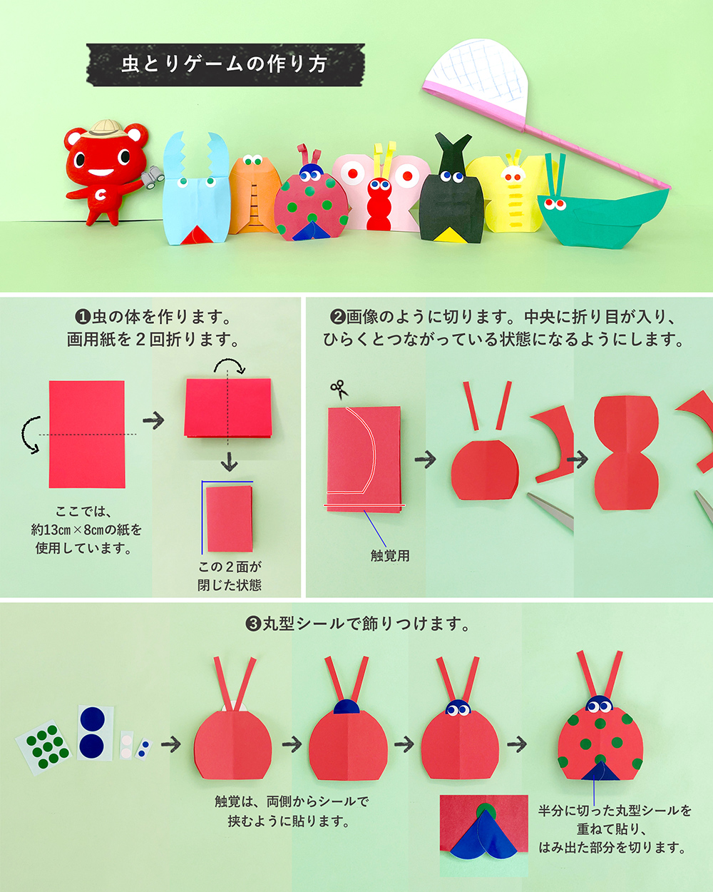 お子さんが好きなカラーとデコレーションでお気に入りの虫を作ることが出来ます。