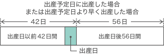 出産手当金は、出産前の42日間と出産日の翌日以降の56日間までの範囲で支給されますが(多胎妊娠の場合は98日まで延長されます)、振り込まれるのは勤務先に申請書を提出してから。一般的には産後2カ月半から4カ月後が目安となります。また、予定日より早めに生まれたときは、産前休業の日数から早まった日数を引いて計算され、遅く生まれたときは遅くなった日数を加えて計算されます。