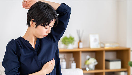 色やふくらみなど、見た目に変化がないか、触れたときの感触など、日頃の自分の乳房の状態をよく知っておきましょう。乳房だけでなく、ワキの下の状態も見ておくことを忘れずに。また、乳首を軽くつまんだときに分泌物が出ないかを調べてみましょう。